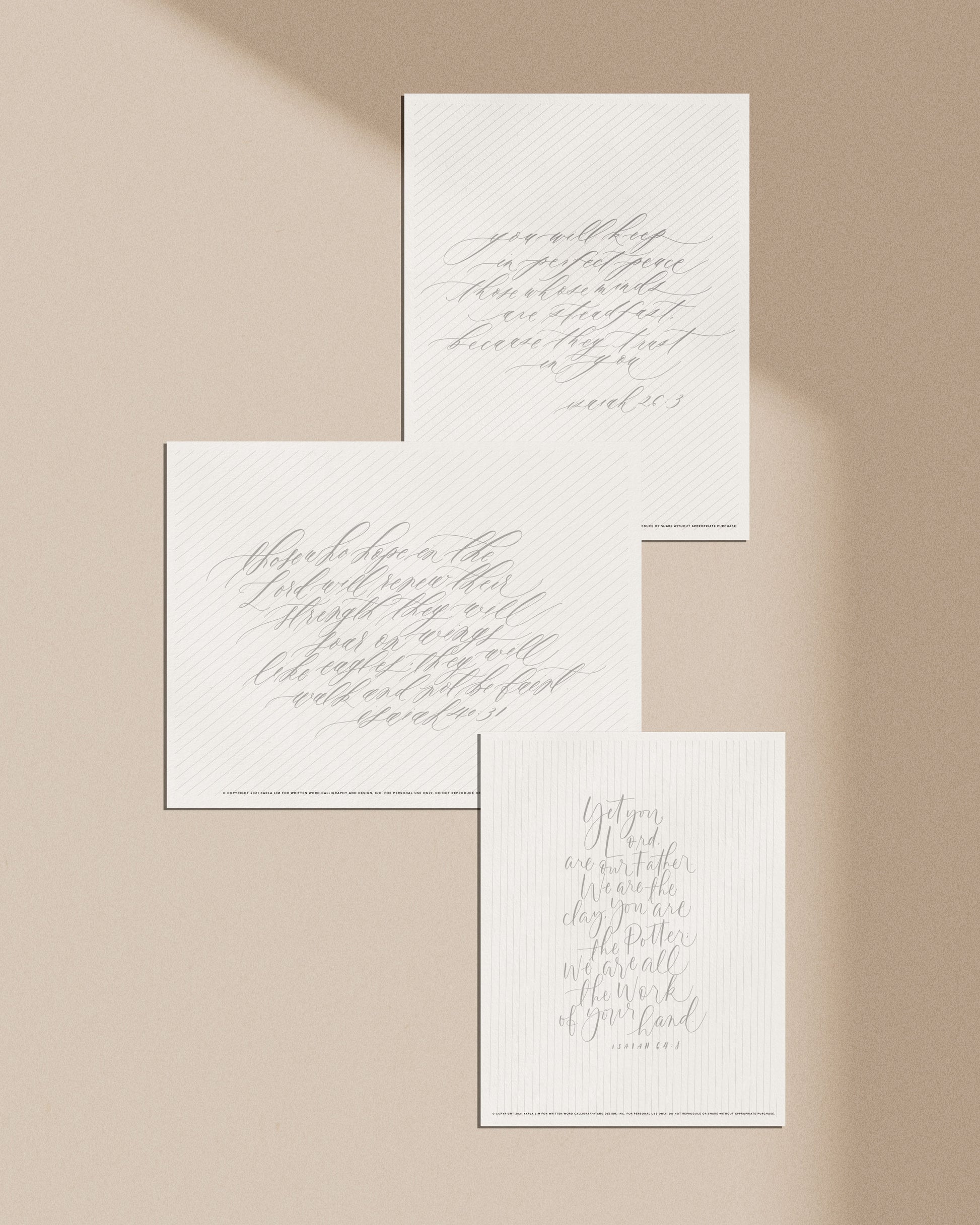 Digital Download of calligraphy quotes written in various Written Word Calligraphy styles. This collection features excerpts of some of our favourite Isaiah verses.