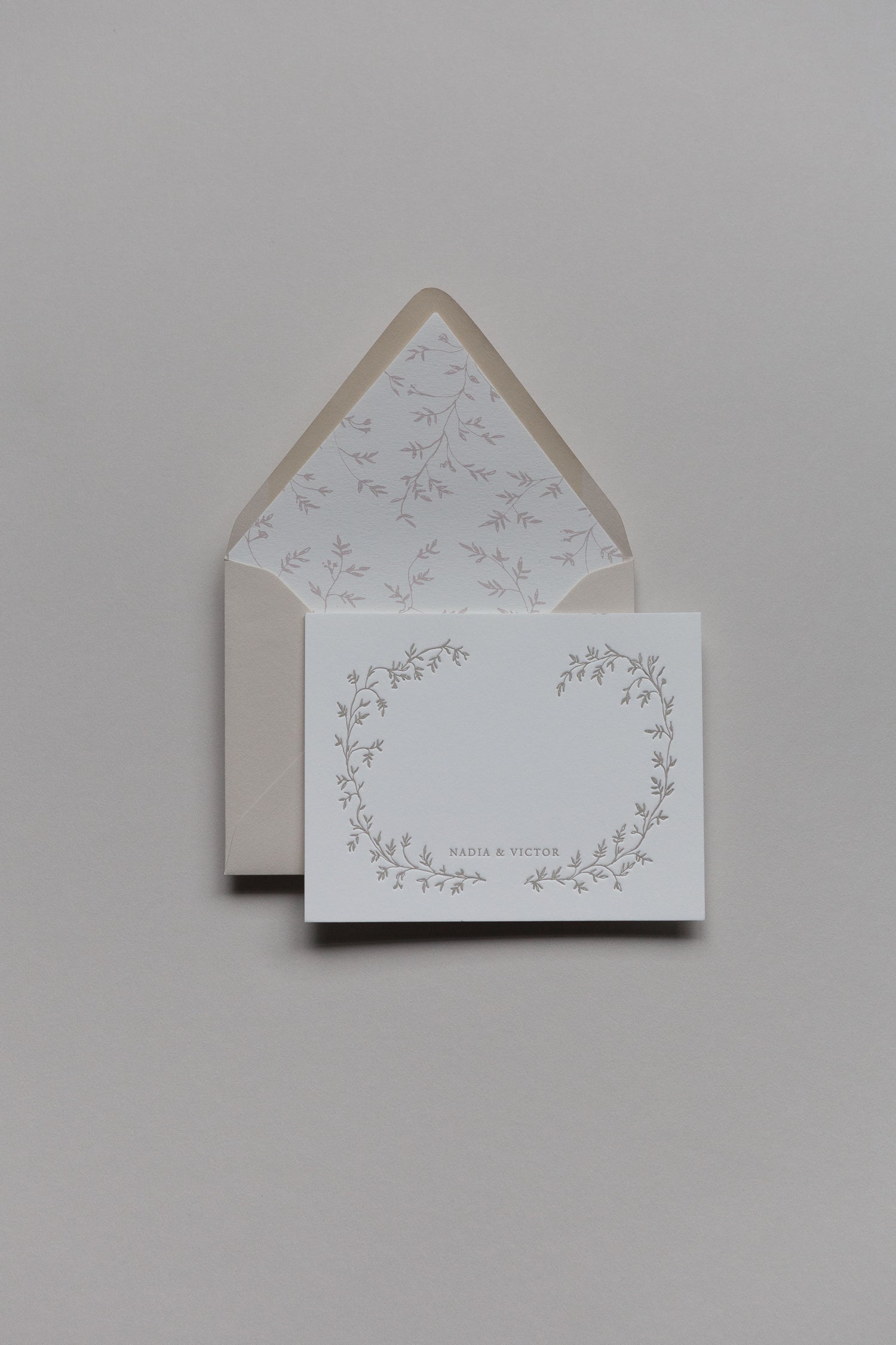 This design is available in digital printing for the flat colors in gray, taupe, black; and in foil printing for the metallic colors: gold, copper and champagne. These envelope liners are made to fit our A2 envelopes and are only available for purchase if you purchase our personalized stationery, they are not available for individual purchase.
