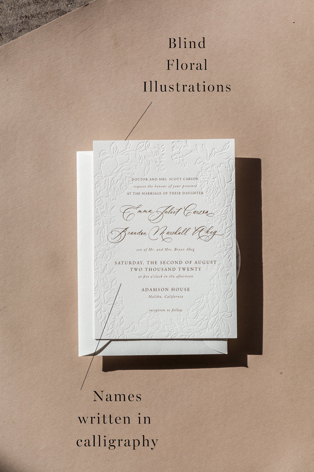 - Printing Color & Method: Blind Letterpress and Gold Foil Printing