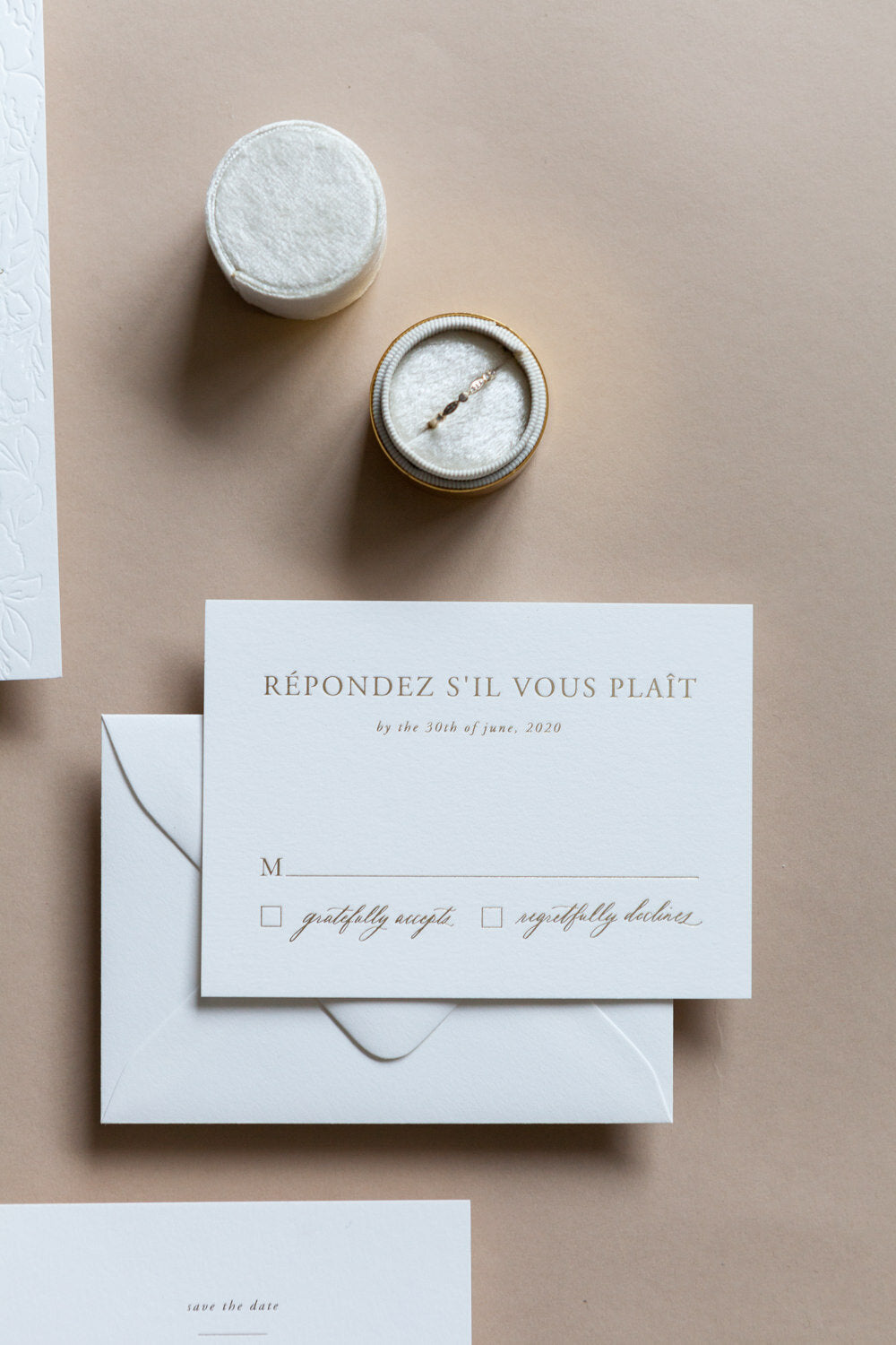 The color palette pictured in this suite is Veil, our most classic and elegant combination of ivory and gold.