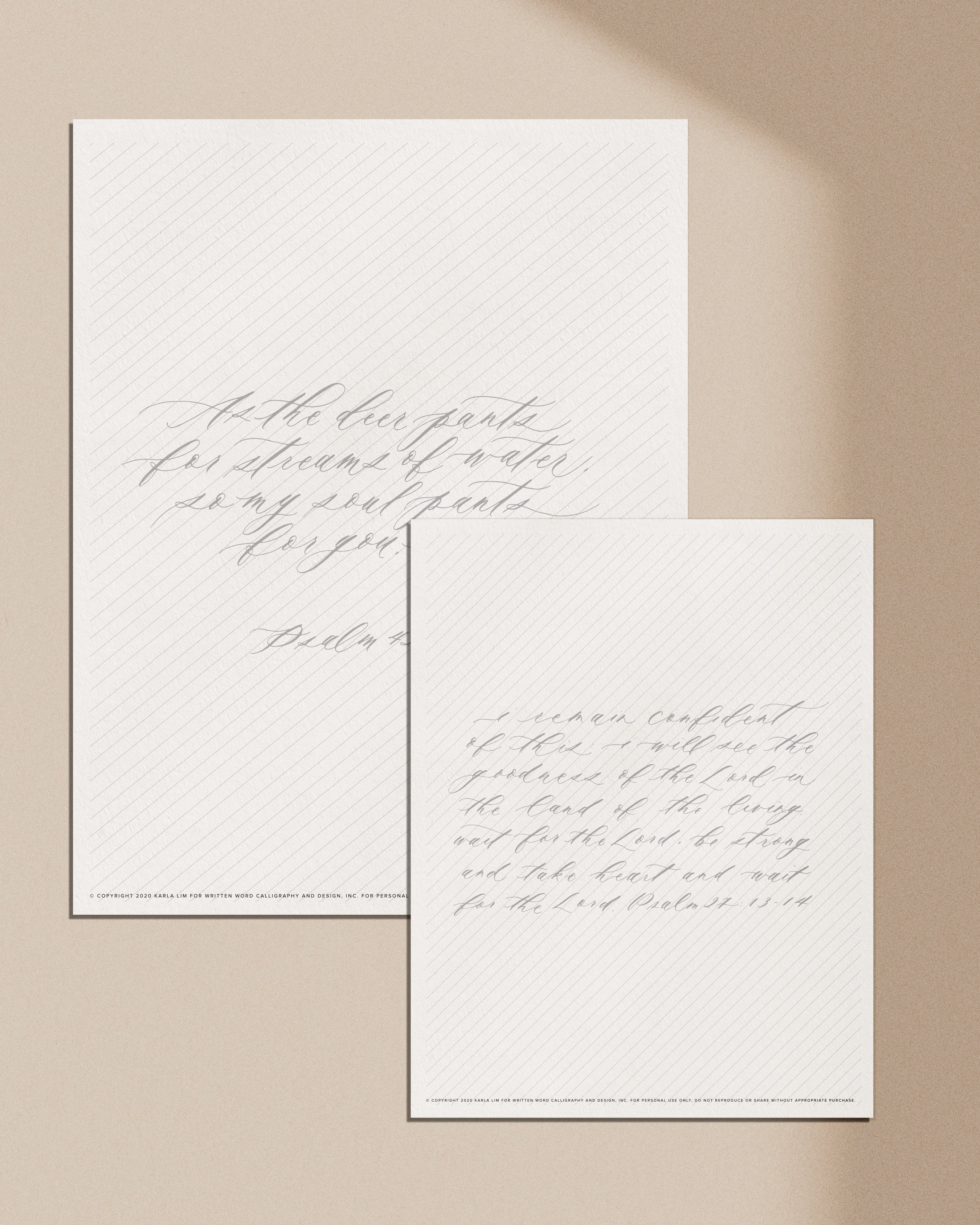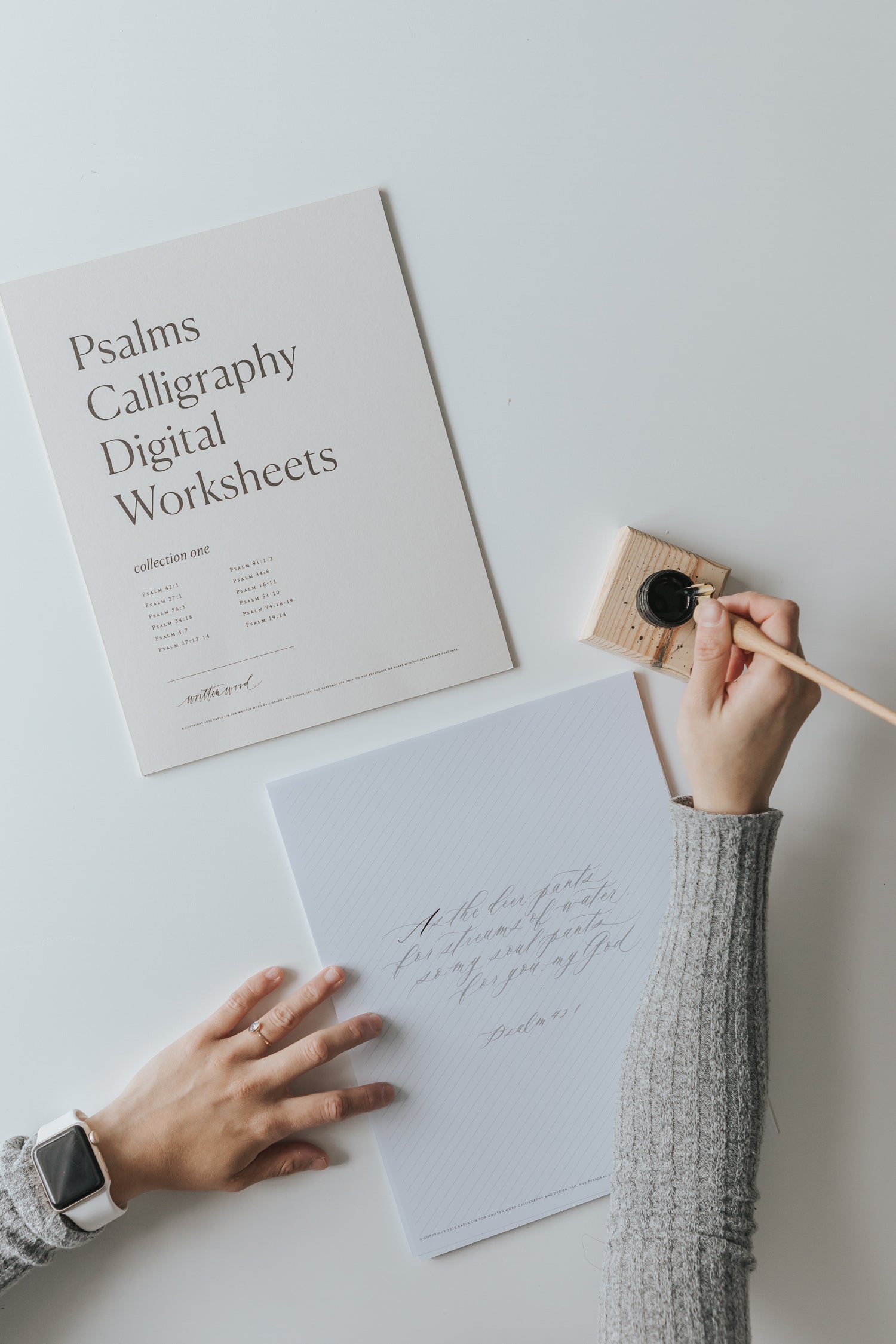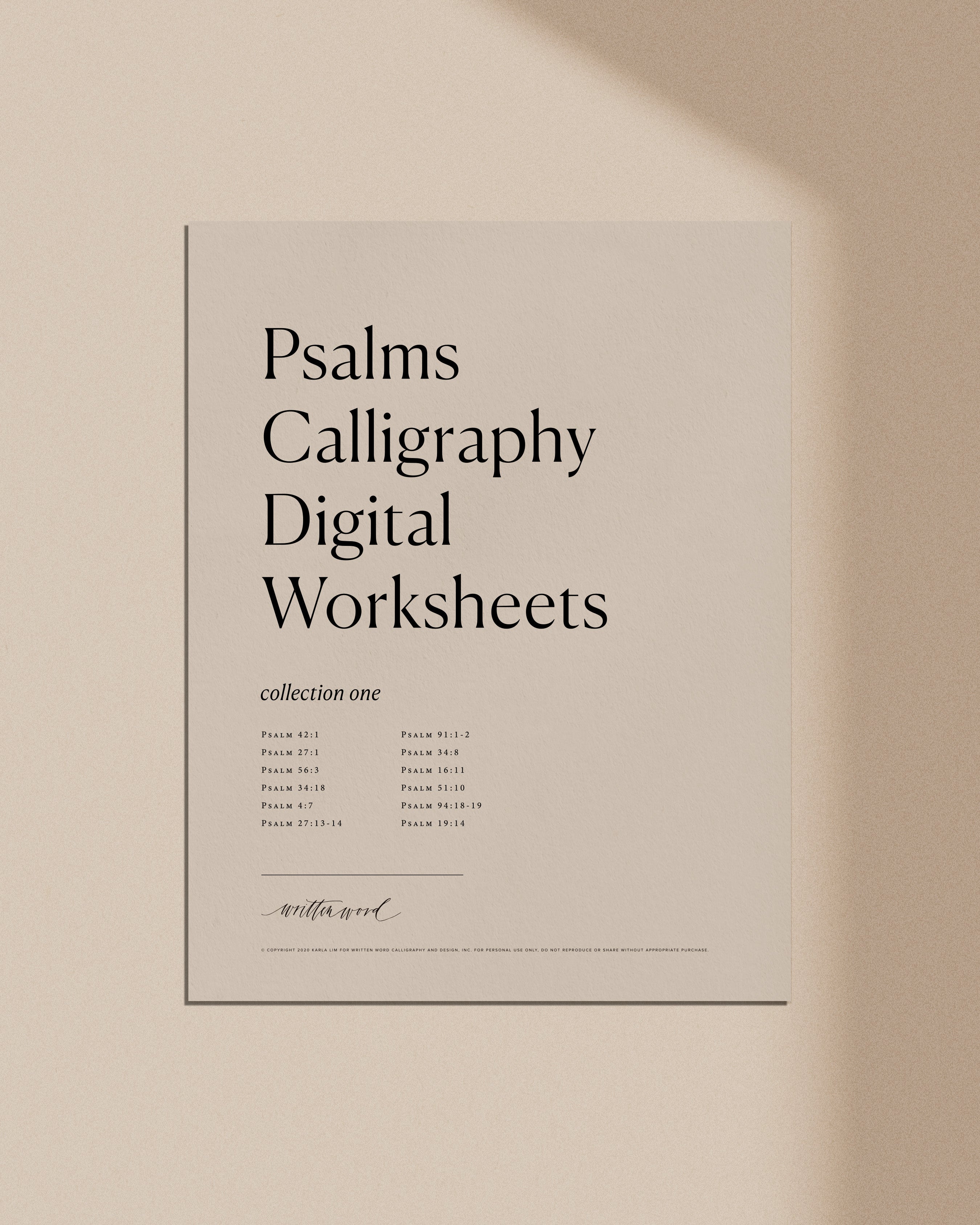 Digital Download of calligraphy verses written in various Written Word Calligraphy styles. This collection features excerpts of some of our favourite Psalms from the Bible.