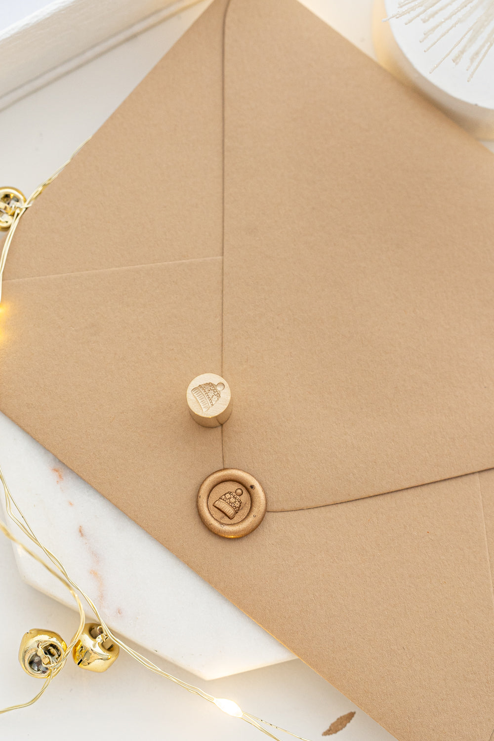- 9mm diameter circle wax seal head with a 3d illustration of a knitted toque or beanie.