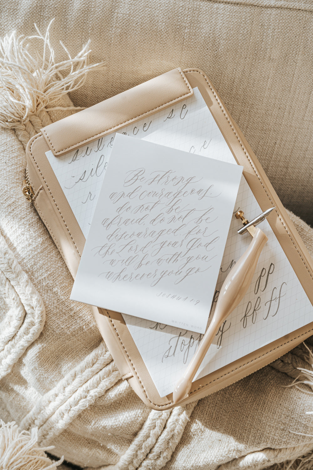We're so excited to share with you guys our traceable Bible Verse notepad. This 50-page notepad includes 25 different encouraging Bible Verses written in various calligraphy styles, printed on ink-friendly paper. Each verse is repeated twice, to make 50 pages.